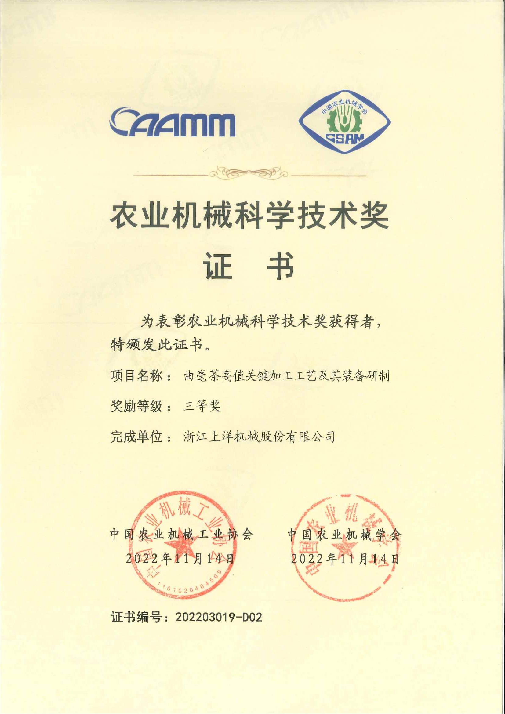 2023年農(nóng)業(yè)機(jī)械科技技術(shù)三等獎