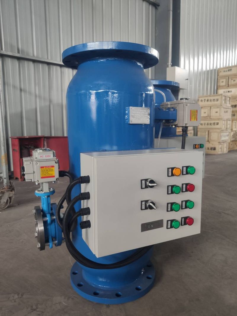 反沖洗過(guò)濾器主要由**碳鋼筒體,過(guò)濾組件,水流導(dǎo)向閥和排污裝置所組成,當(dāng)過(guò)濾器工作時(shí),水流導(dǎo)向閥處于開(kāi)啟狀態(tài),水流自入口進(jìn)入過(guò)濾器,經(jīng)濾網(wǎng)過(guò)濾到出口,水中污物雜質(zhì)等被濾網(wǎng)攔截。當(dāng)過(guò)濾器需要排污時(shí),關(guān)閉水流導(dǎo)向閥,打開(kāi)排污閥,水流經(jīng)濾網(wǎng)前半程過(guò)濾,一部分水經(jīng)過(guò)濾后直接流入系統(tǒng),另一部分水由濾網(wǎng)外側(cè)流入內(nèi)側(cè),不斷沖刷濾網(wǎng)內(nèi)壁上的污物,并經(jīng)排污口排出,起到反向自動(dòng)沖洗濾網(wǎng)和排出污物的作用,整個(gè)反沖排污過(guò)程不用關(guān)閉系統(tǒng),無(wú)需人工進(jìn)行清洗濾芯,實(shí)現(xiàn)了在線排污。
