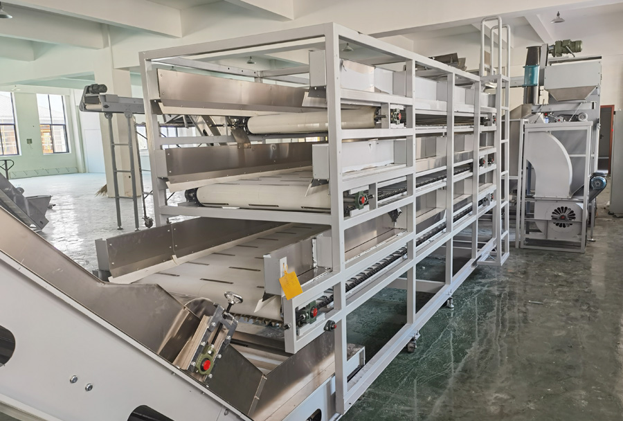 核心優(yōu)點:走水均勻,降低茶葉破損率,可增設(shè)空調(diào)通過改變環(huán)境條件加速回潮,便于下道炒干做型工序加工,整機回潮時間40-120分鐘可調(diào),是茶葉連續(xù)化加工的必備工序。