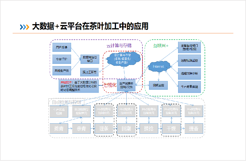 控制系統(tǒng)通過對茶葉加工生產(chǎn)線數(shù)字化管理與數(shù)據(jù)處理技術(shù)的研究,進一步提升茶葉加工生產(chǎn)線的數(shù)字化管理水平,并通過加工品質(zhì)在線監(jiān)測與反饋實現(xiàn)一葉一策的加工模式,通過加工大數(shù)據(jù)的處理與分析為工藝優(yōu)化與設(shè)備改進提供支撐。